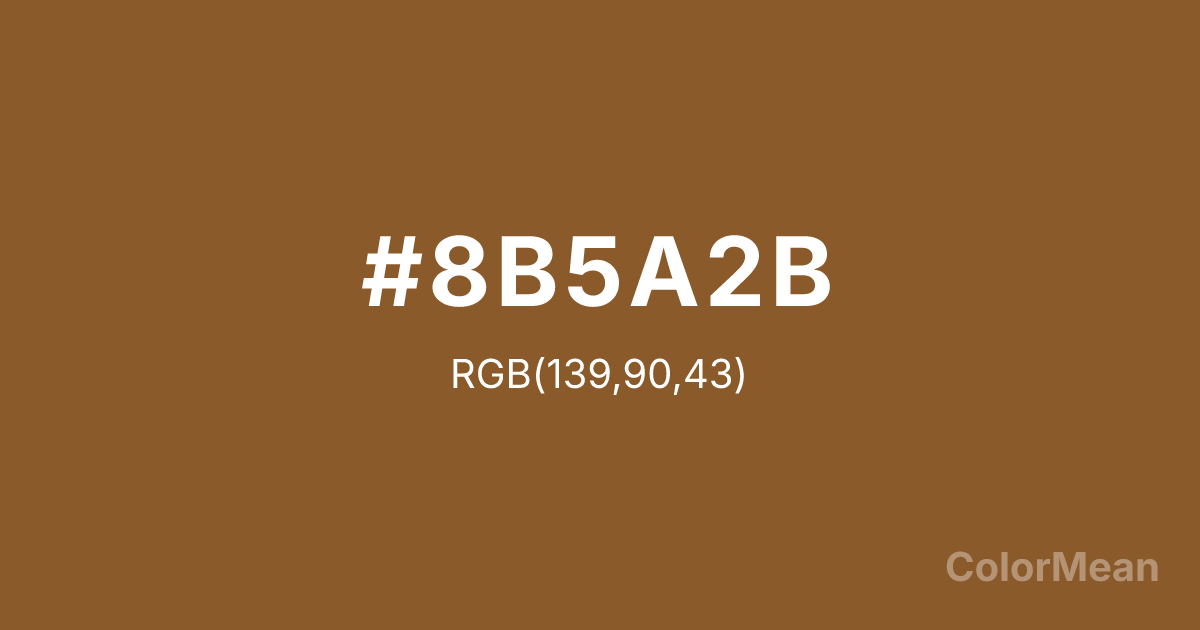 Tan 4 (#8B5A2B) RGB value is (139, 90, 43). The hex color red value is 139, green is 90, and blue is 43. Its HSL format shows a hue of 29°, saturation of 53 percent, and lightness of 36 percent. The CMYK process values are 0 percent, 35 percent, 69 percent, 45 percent.