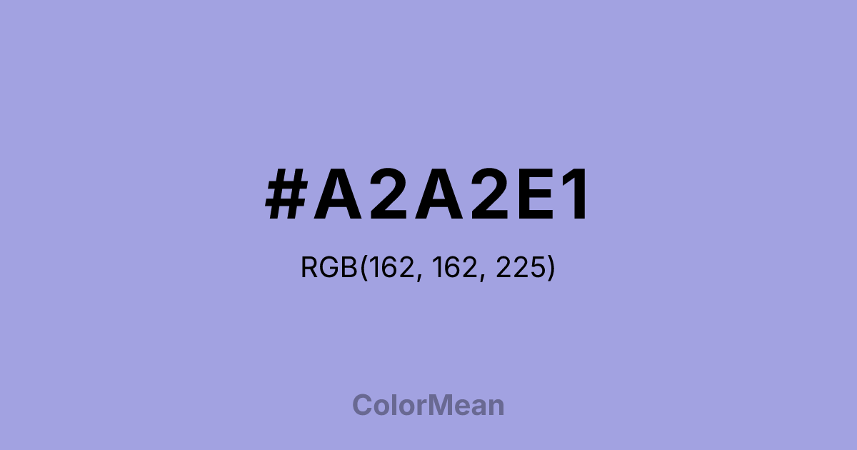 #A2A2E1 RGB value is (162, 162, 225). The hex color red value is 162, green is 162, and blue is 225. Its HSL format shows a hue of 240°, saturation of 51 percent, and lightness of 76 percent. The CMYK process values are 28 percent, 28 percent, 0 percent, 12 percent.