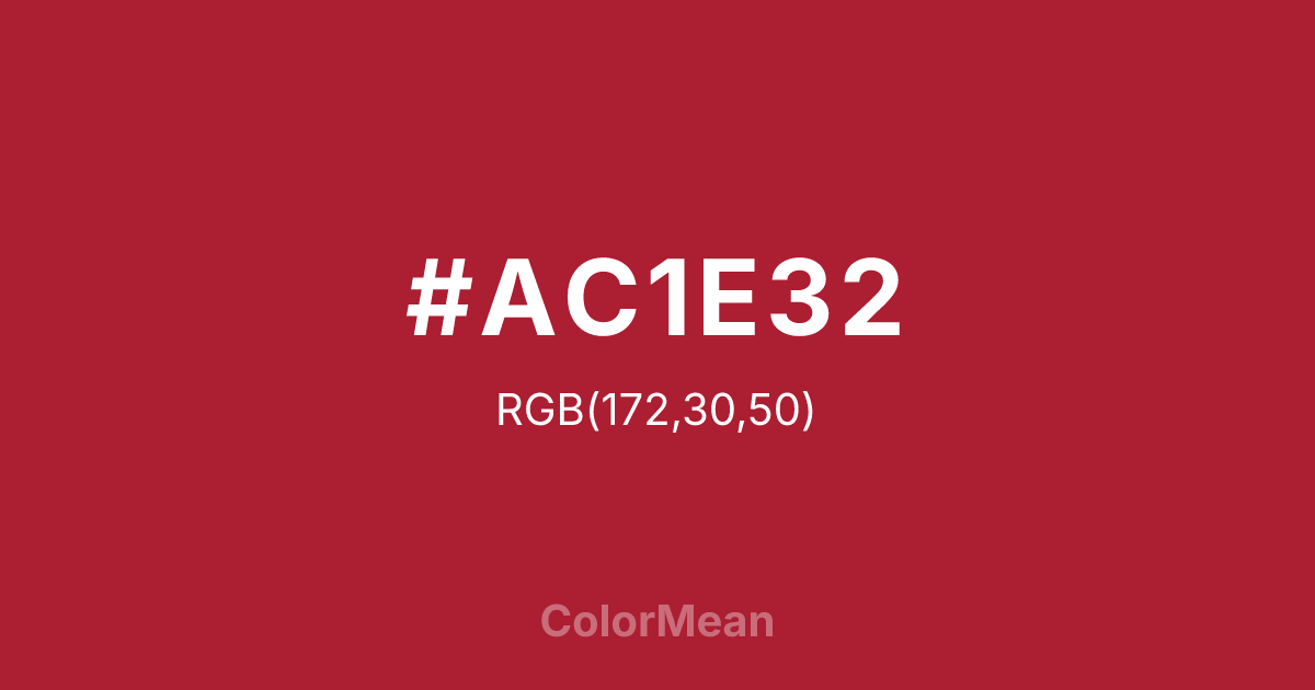 #AC1E32 RGB value is (172, 30, 50). The hex color red value is 172, green is 30, and blue is 50. Its HSL format shows a hue of 352°, saturation of 70 percent, and lightness of 40 percent. The CMYK process values are 0 percent, 83 percent, 71 percent, 33 percent.
