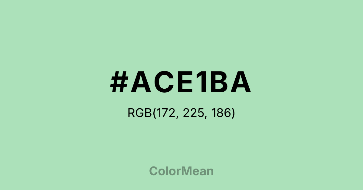 #ACE1BA RGB value is (172, 225, 186). The hex color red value is 172, green is 225, and blue is 186. Its HSL format shows a hue of 136°, saturation of 47 percent, and lightness of 78 percent. The CMYK process values are 24 percent, 0 percent, 17 percent, 12 percent.