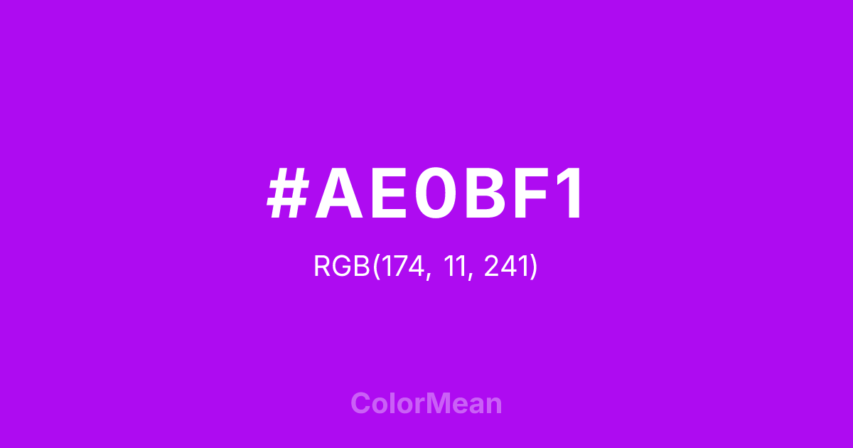 Color swatch image showing #AE0BF1 with RGB(174,11,241) values