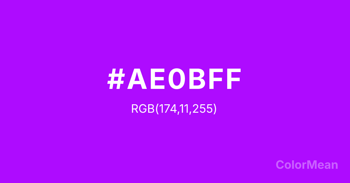 Color swatch image showing #AE0BFF with RGB(174,11,255) values