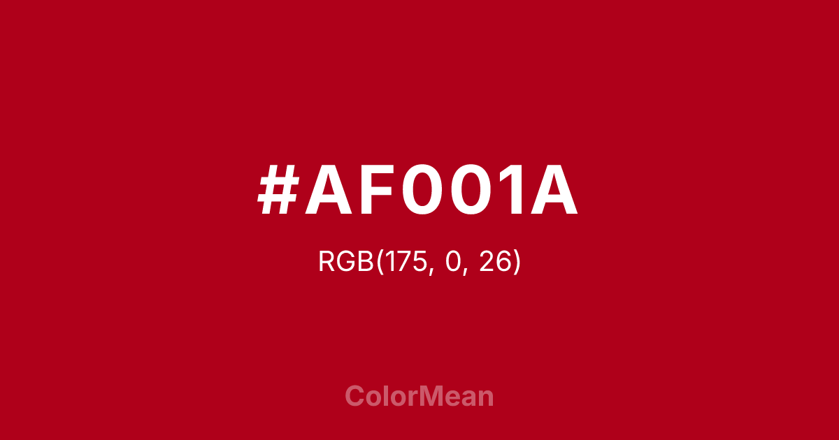 Color swatch image showing #AF001A with RGB(175,0,26) values