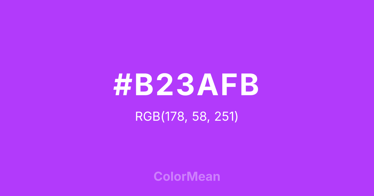 Color swatch image showing #B23AFB with RGB(178,58,251) values