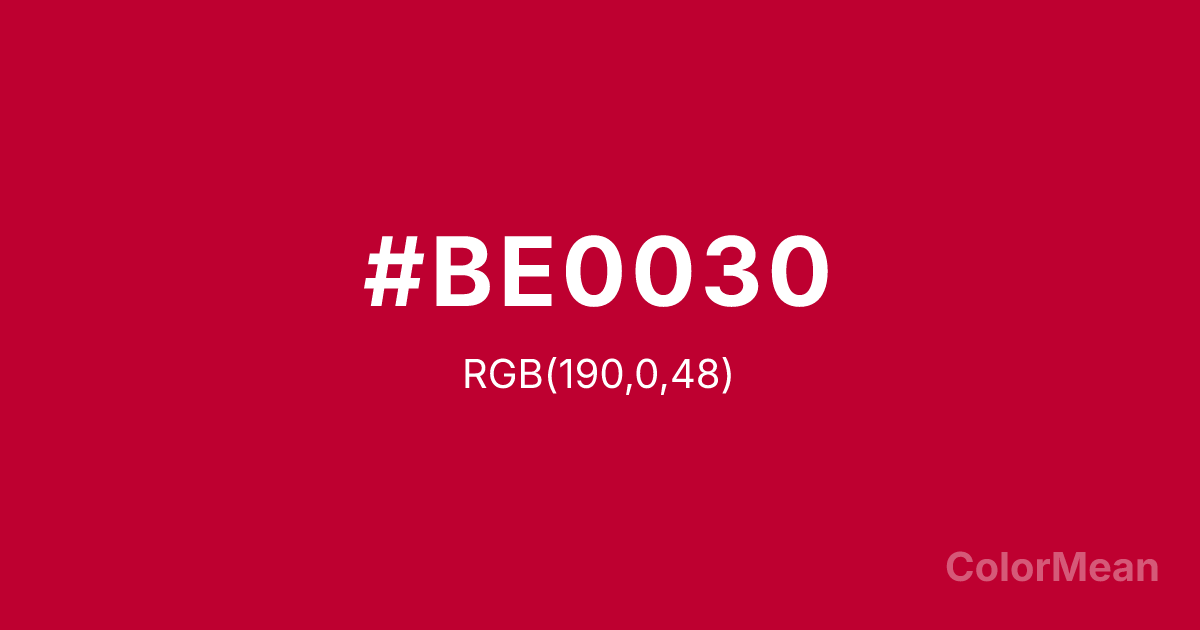 Color swatch image showing #BE0030 with RGB(190,0,48) values