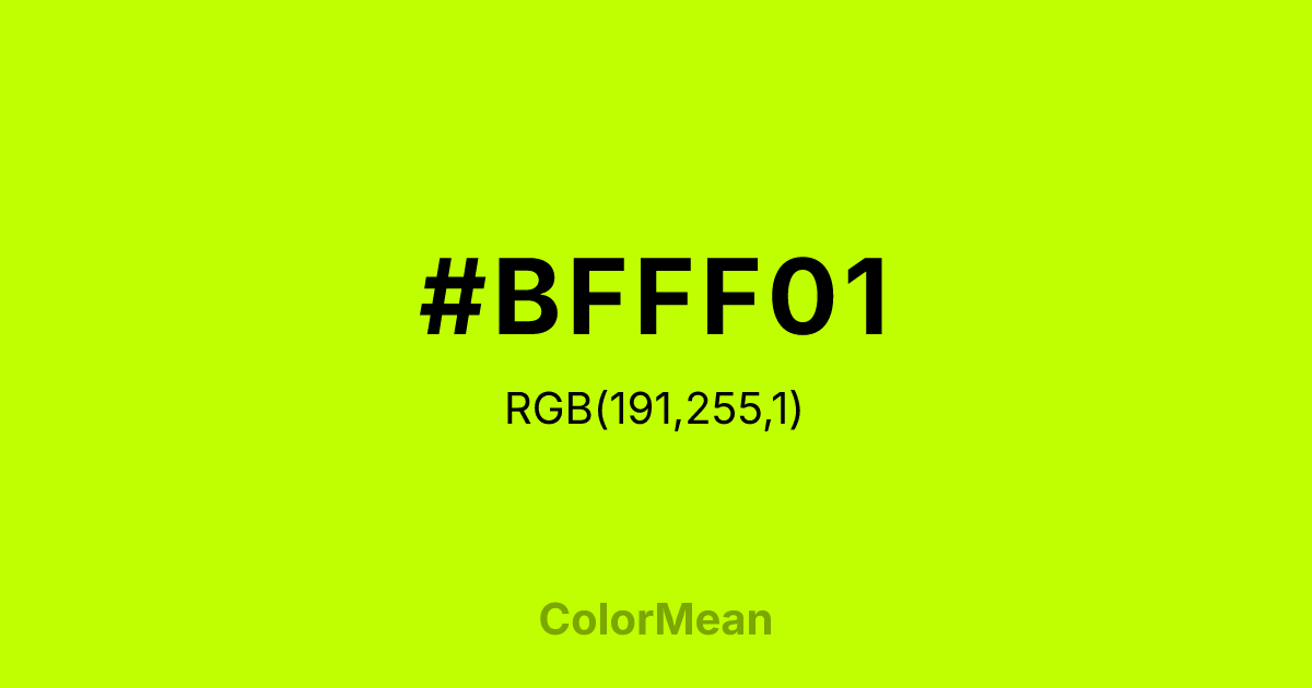 Color swatch image showing #BFFF01 with RGB(191,255,1) values