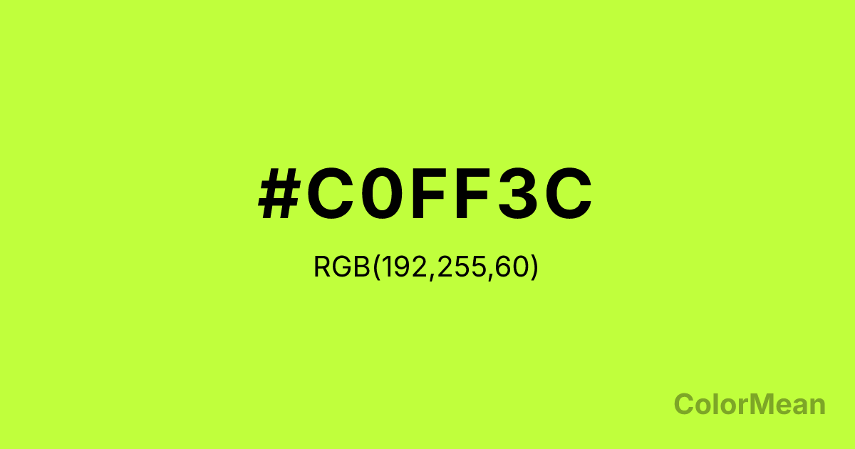 Color swatch image showing #C0FF3C with RGB(192,255,60) values