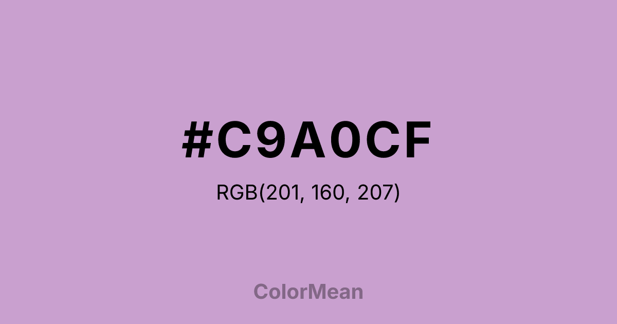 #C9A0CF RGB value is (201, 160, 207). The hex color red value is 201, green is 160, and blue is 207. Its HSL format shows a hue of 292°, saturation of 33 percent, and lightness of 72 percent. The CMYK process values are 3 percent, 23 percent, 0 percent, 19 percent.