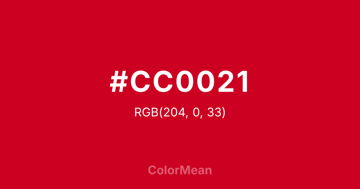 Color swatch image showing #CC0021 with RGB(204,0,33) values