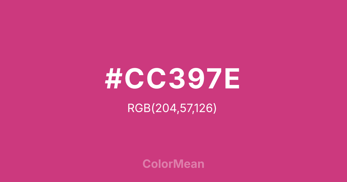 #CC397E RGB value is (204, 57, 126). The hex color red value is 204, green is 57, and blue is 126. Its HSL format shows a hue of 332°, saturation of 59 percent, and lightness of 51 percent. The CMYK process values are 0 percent, 72 percent, 38 percent, 20 percent.