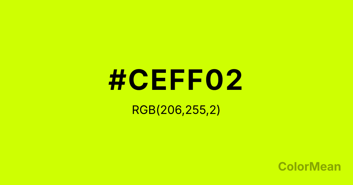 Color swatch image showing #CEFF02 with RGB(206,255,2) values