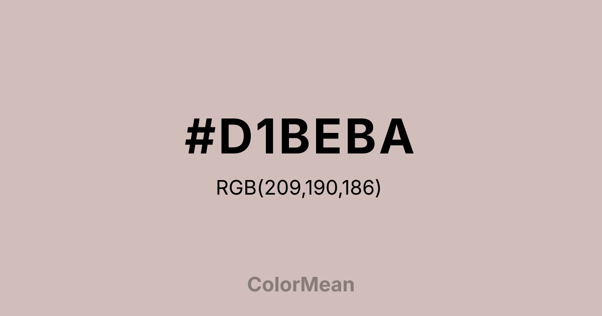 #D1BEBA RGB value is (209, 190, 186). The hex color red value is 209, green is 190, and blue is 186. Its HSL format shows a hue of 10°, saturation of 20 percent, and lightness of 77 percent. The CMYK process values are 0 percent, 9 percent, 11 percent, 18 percent.
