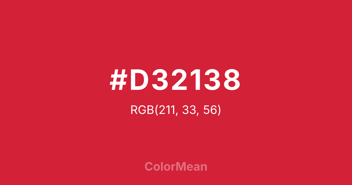 Color swatch image showing #D32138 with RGB(211,33,56) values