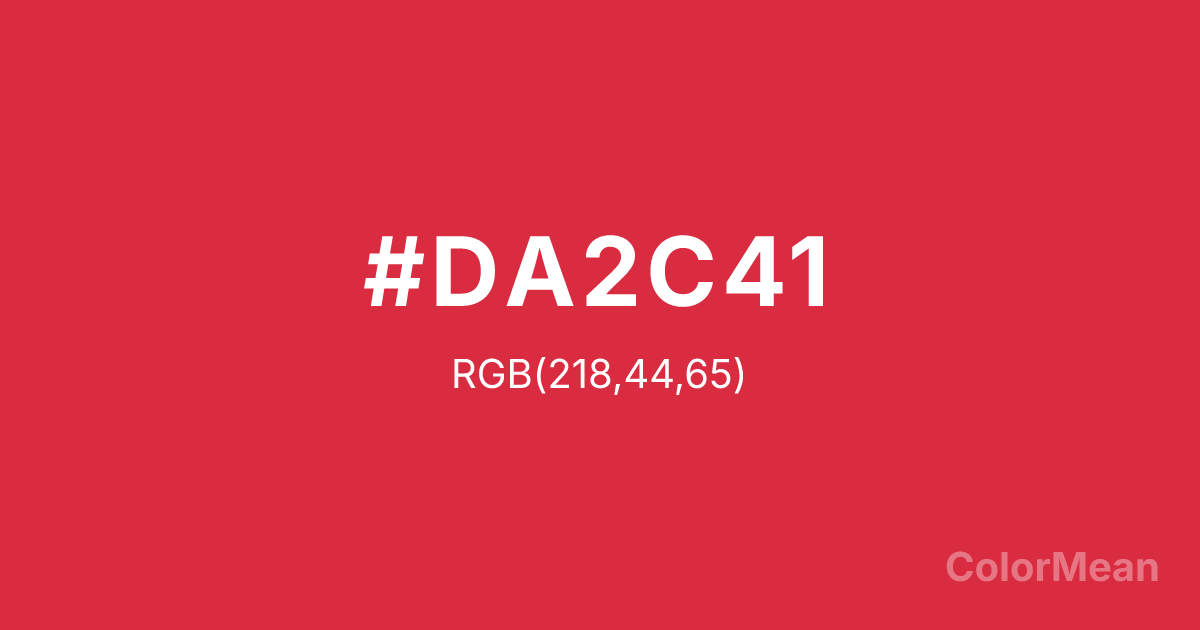 Color swatch image showing #DA2C41 with RGB(218,44,65) values