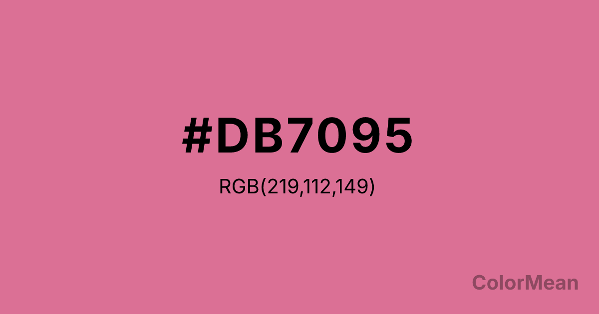 #DB7095 RGB value is (219, 112, 149). The hex color red value is 219, green is 112, and blue is 149. Its HSL format shows a hue of 339°, saturation of 60 percent, and lightness of 65 percent. The CMYK process values are 0 percent, 49 percent, 32 percent, 14 percent.