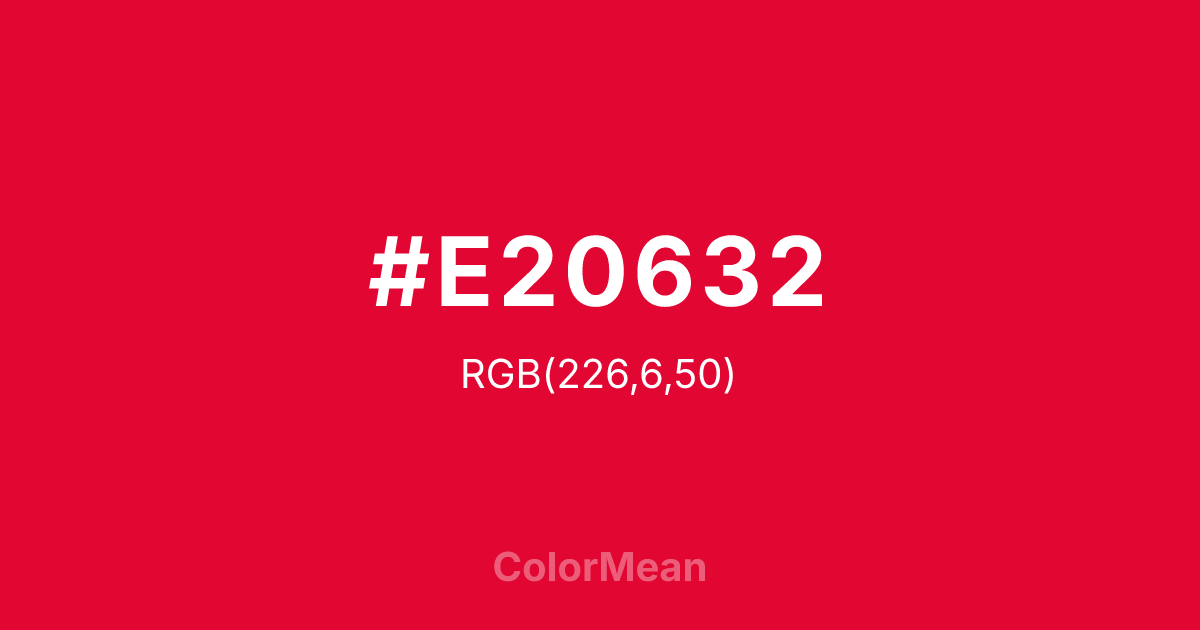 Everything you need to know about #E20632 including values, color harmonies, shades, meanings, and applications in design, branding, and everyday visuals.