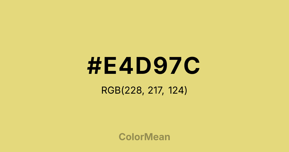 #E4D97C RGB value is (228, 217, 124). The hex color red value is 228, green is 217, and blue is 124. Its HSL format shows a hue of 54°, saturation of 66 percent, and lightness of 69 percent. The CMYK process values are 0 percent, 5 percent, 46 percent, 11 percent.