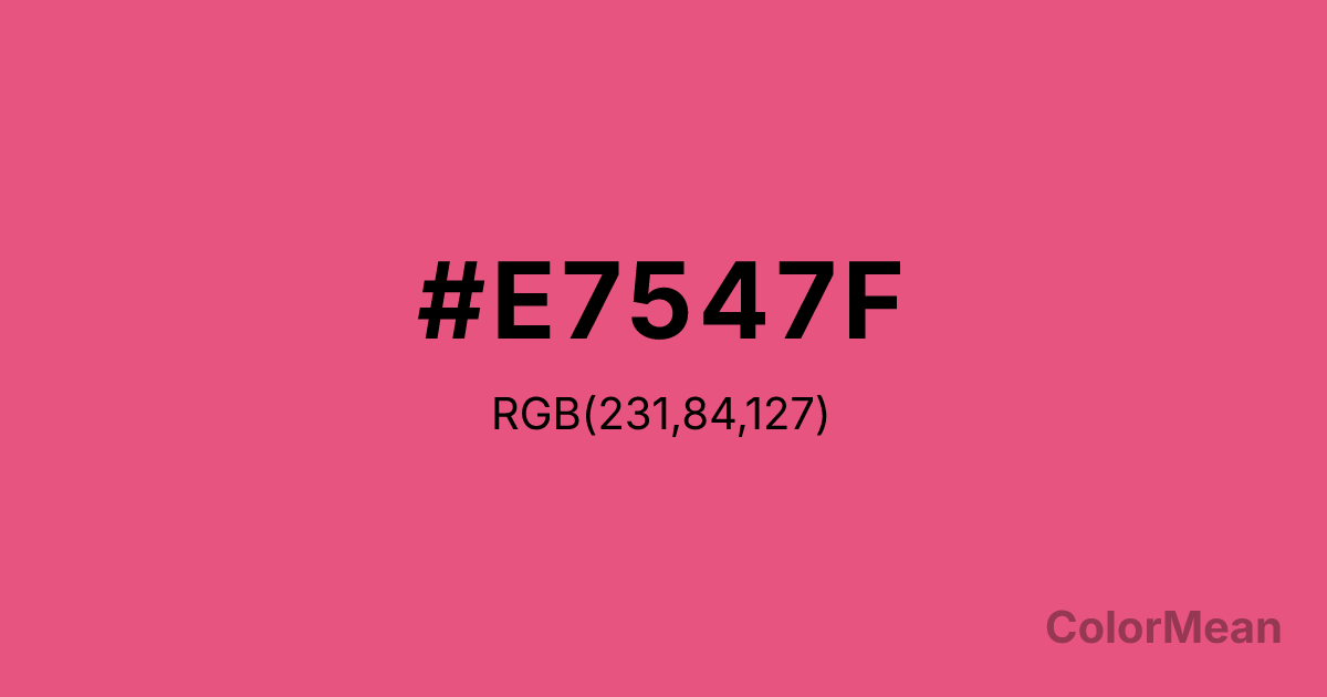 Color swatch image showing #E7547F with RGB(231,84,127) values