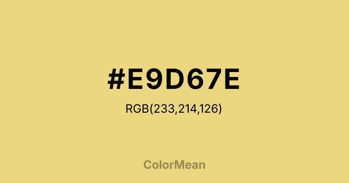 #E9D67E RGB value is (233, 214, 126). The hex color red value is 233, green is 214, and blue is 126. Its HSL format shows a hue of 49°, saturation of 71 percent, and lightness of 70 percent. The CMYK process values are 0 percent, 8 percent, 46 percent, 9 percent.