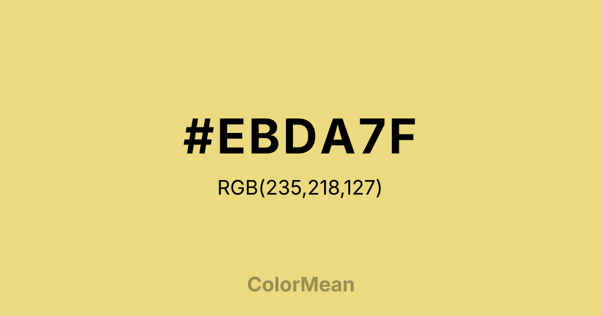 #EBDA7F RGB value is (235, 218, 127). The hex color red value is 235, green is 218, and blue is 127. Its HSL format shows a hue of 51°, saturation of 73 percent, and lightness of 71 percent. The CMYK process values are 0 percent, 7 percent, 46 percent, 8 percent.