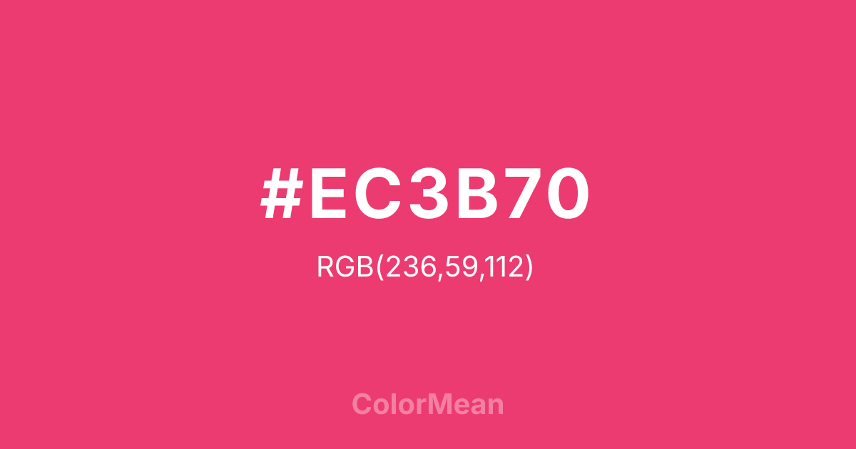 #EC3B70 RGB value is (236, 59, 112). The hex color red value is 236, green is 59, and blue is 112. Its HSL format shows a hue of 342°, saturation of 82 percent, and lightness of 58 percent. The CMYK process values are 0 percent, 75 percent, 53 percent, 7 percent.