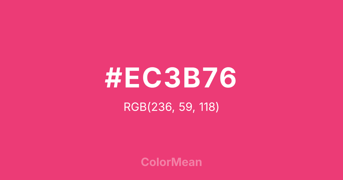 #EC3B76 RGB value is (236, 59, 118). The hex color red value is 236, green is 59, and blue is 118. Its HSL format shows a hue of 340°, saturation of 82 percent, and lightness of 58 percent. The CMYK process values are 0 percent, 75 percent, 50 percent, 7 percent.