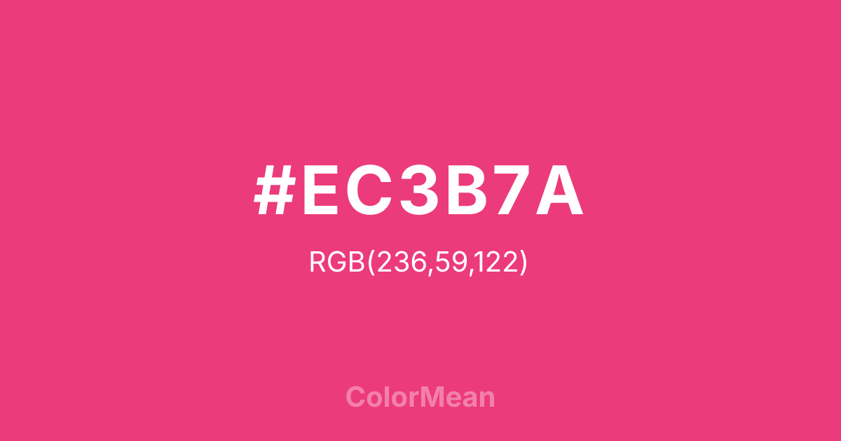 #EC3B7A RGB value is (236, 59, 122). The hex color red value is 236, green is 59, and blue is 122. Its HSL format shows a hue of 339°, saturation of 82 percent, and lightness of 58 percent. The CMYK process values are 0 percent, 75 percent, 48 percent, 7 percent.