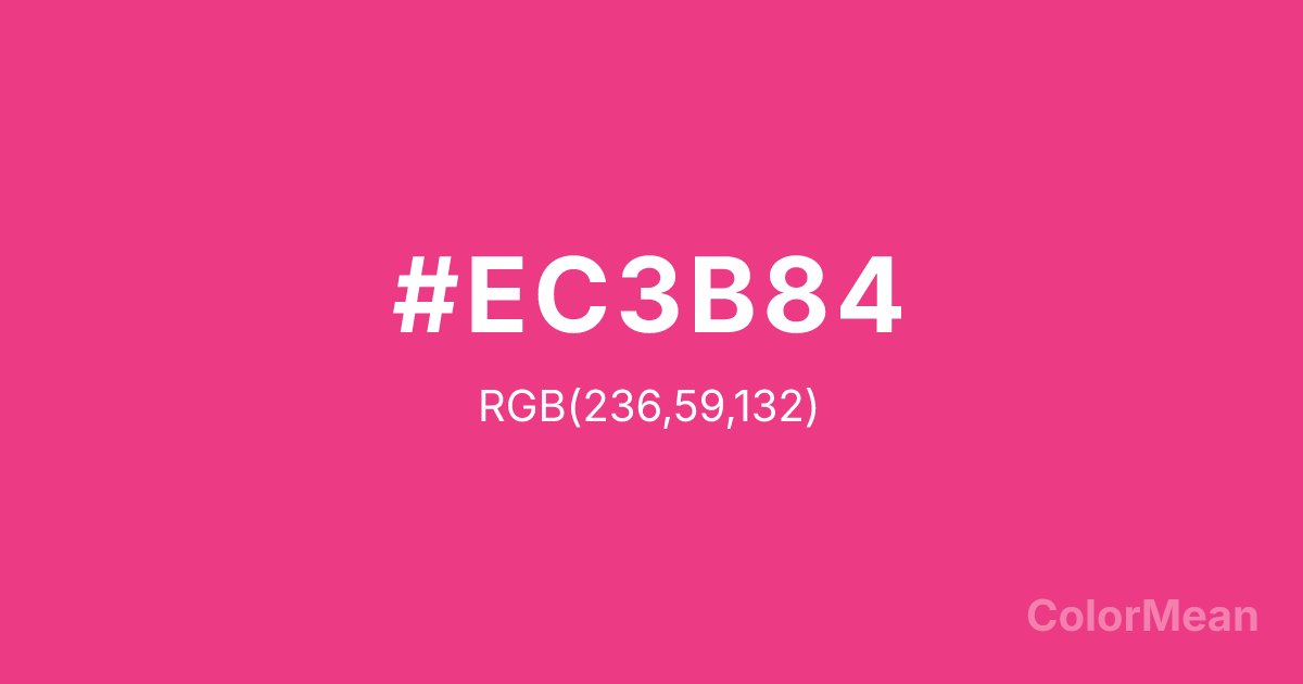 #EC3B84 RGB value is (236, 59, 132). The hex color red value is 236, green is 59, and blue is 132. Its HSL format shows a hue of 335°, saturation of 82 percent, and lightness of 58 percent. The CMYK process values are 0 percent, 75 percent, 44 percent, 7 percent.