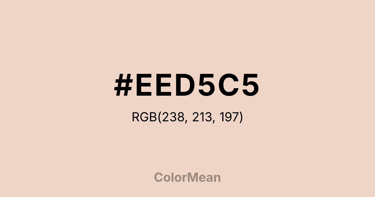 #EED5C5 RGB value is (238, 213, 197). The hex color red value is 238, green is 213, and blue is 197. Its HSL format shows a hue of 23°, saturation of 55 percent, and lightness of 85 percent. The CMYK process values are 0 percent, 11 percent, 17 percent, 7 percent.