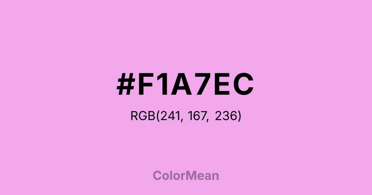 #F1A7EC RGB value is (241, 167, 236). The hex color red value is 241, green is 167, and blue is 236. Its HSL format shows a hue of 304°, saturation of 73 percent, and lightness of 80 percent. The CMYK process values are 0 percent, 31 percent, 2 percent, 5 percent.