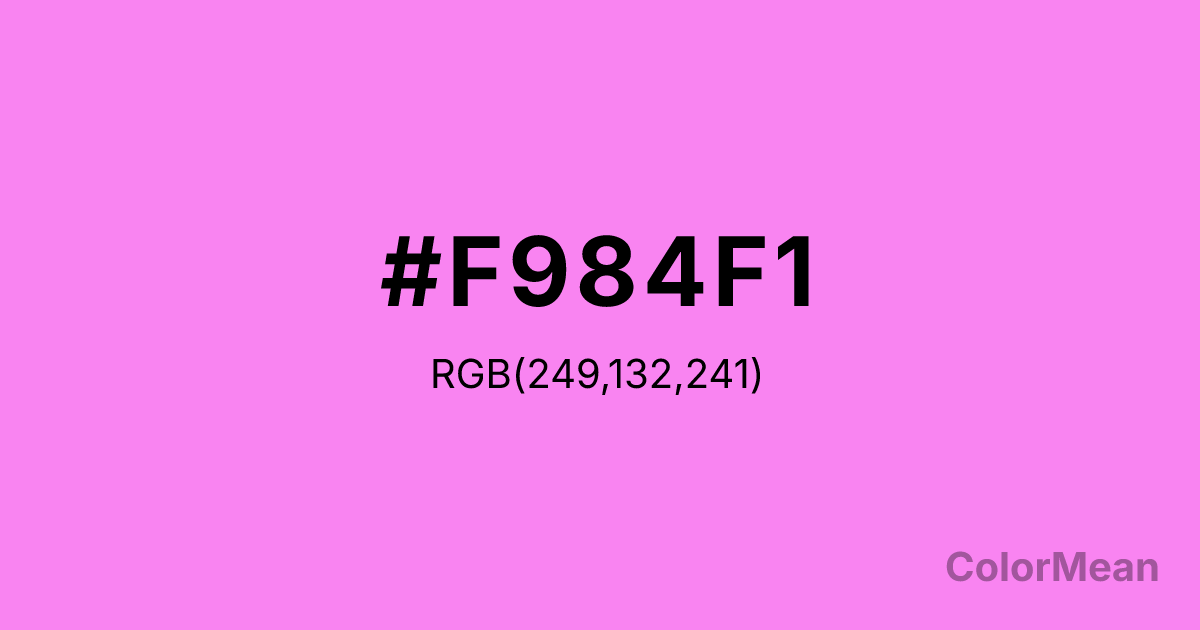 Color swatch image showing #F984F1 with RGB(249,132,241) values