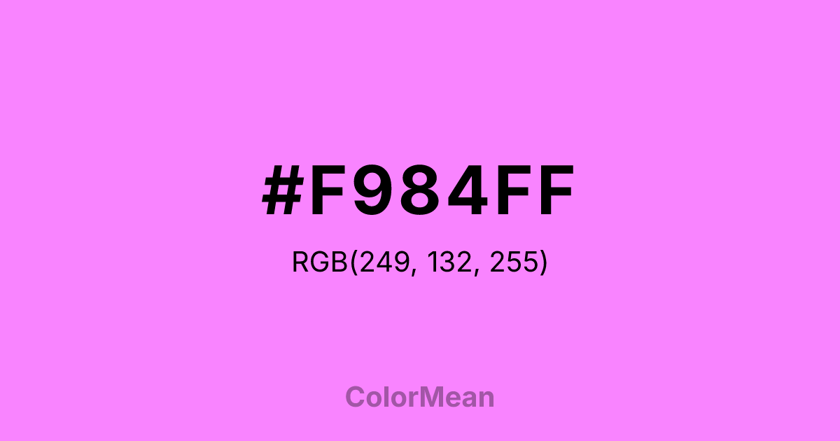 Color swatch image showing #F984FF with RGB(249,132,255) values
