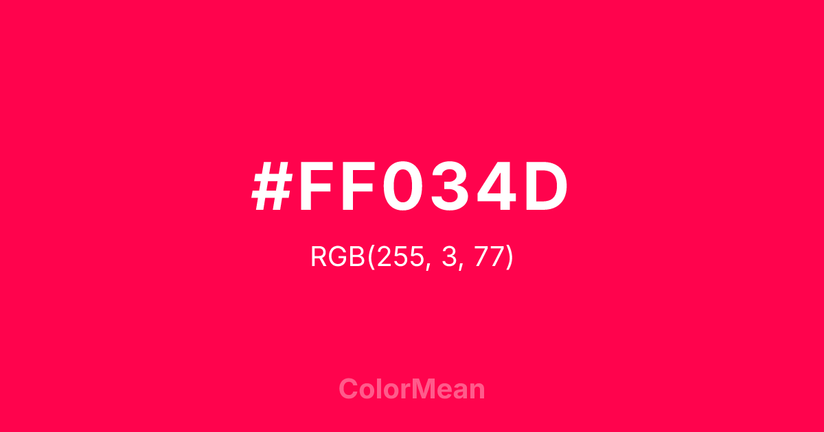 Color swatch image showing #FF034D with RGB(255,3,77) values