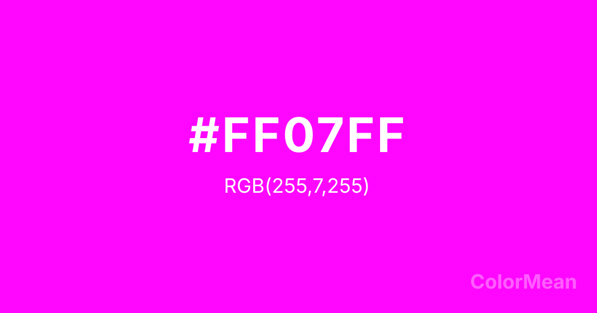 Color swatch image showing #FF07FF with RGB(255,7,255) values