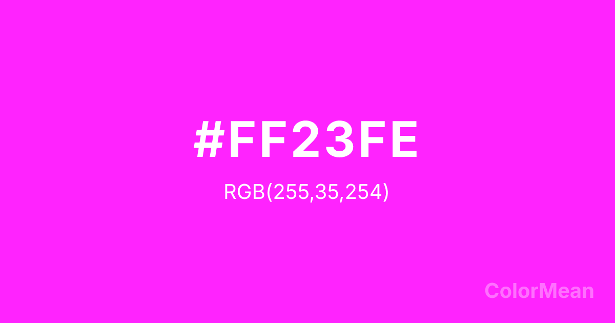 Color swatch image showing #FF23FE with RGB(255,35,254) values