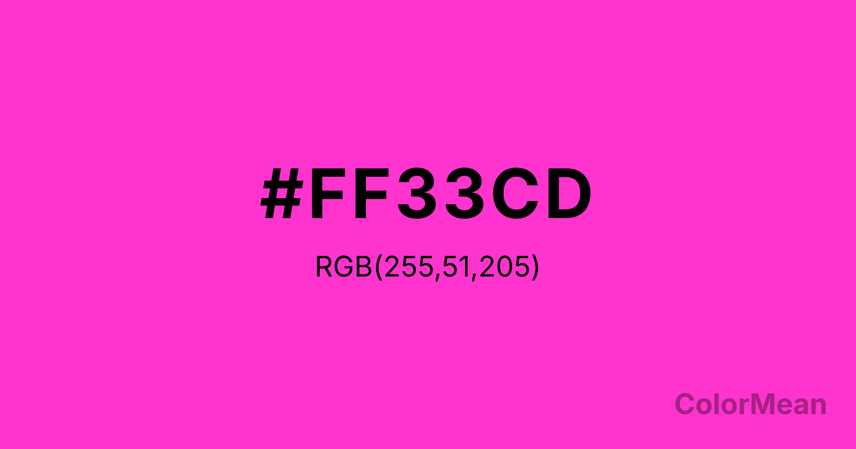 Color swatch image showing #FF33CD with RGB(255,51,205) values