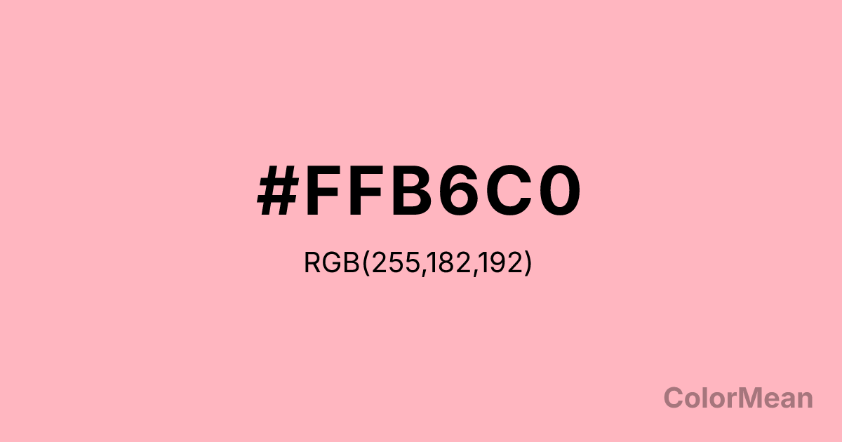 #FFB6C0 RGB value is (255, 182, 192). The hex color red value is 255, green is 182, and blue is 192. Its HSL format shows a hue of 352°, saturation of 100 percent, and lightness of 86 percent. The CMYK process values are 0 percent, 29 percent, 25 percent, 0 percent.