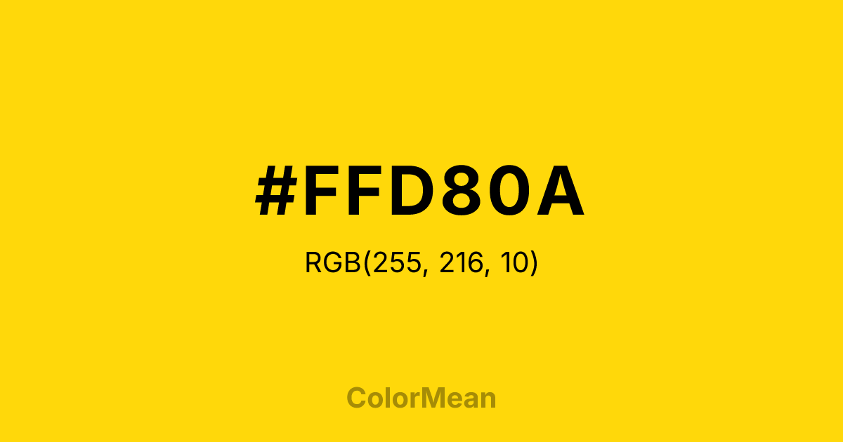 Everything you need to know about #FFD80A including values, color harmonies, shades, meanings, and applications in design, branding, and everyday visuals.