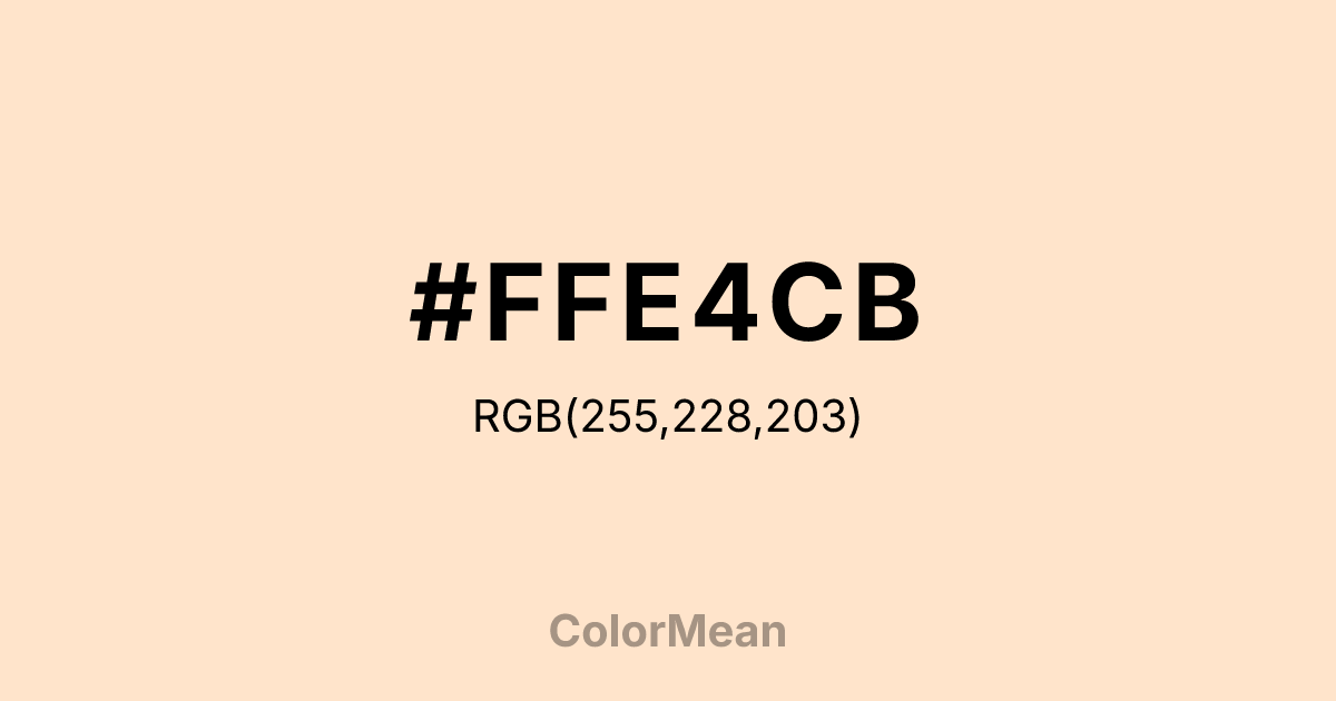 Color #FFE4CB signifies soft warmth, gentle comfort, and inviting brightness. Its pale peach-beige tone evokes polished wood and natural sunlight. Color #FFE4CB encourages calm focus, relaxed awareness, and subtle cheerfulness. In design, color #FFE4CB complements pastel, neutral, or warm palettes, providing a cozy and harmonious base. #FFE4CB embodies gentle warmth, visual softness, and approachable elegance. #FFE4CB color promotes attentiveness, calm reflection, and welcoming energy.