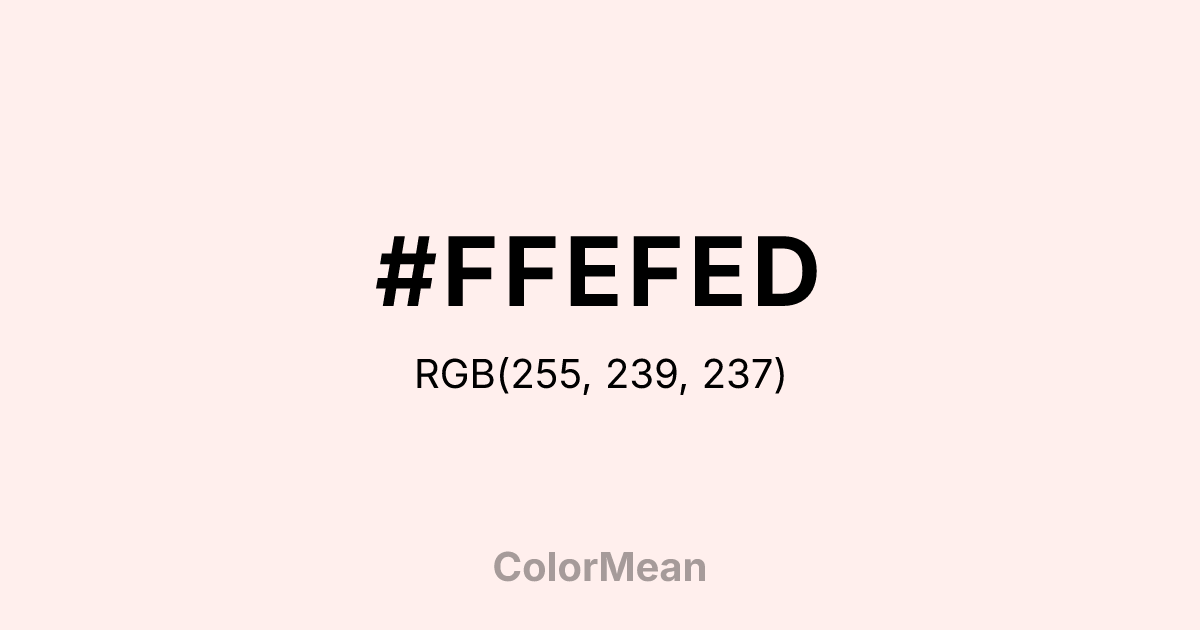 #FFEFED RGB value is (255, 239, 237). The hex color red value is 255, green is 239, and blue is 237. Its HSL format shows a hue of 7°, saturation of 100 percent, and lightness of 96 percent. The CMYK process values are 0 percent, 6 percent, 7 percent, 0 percent.