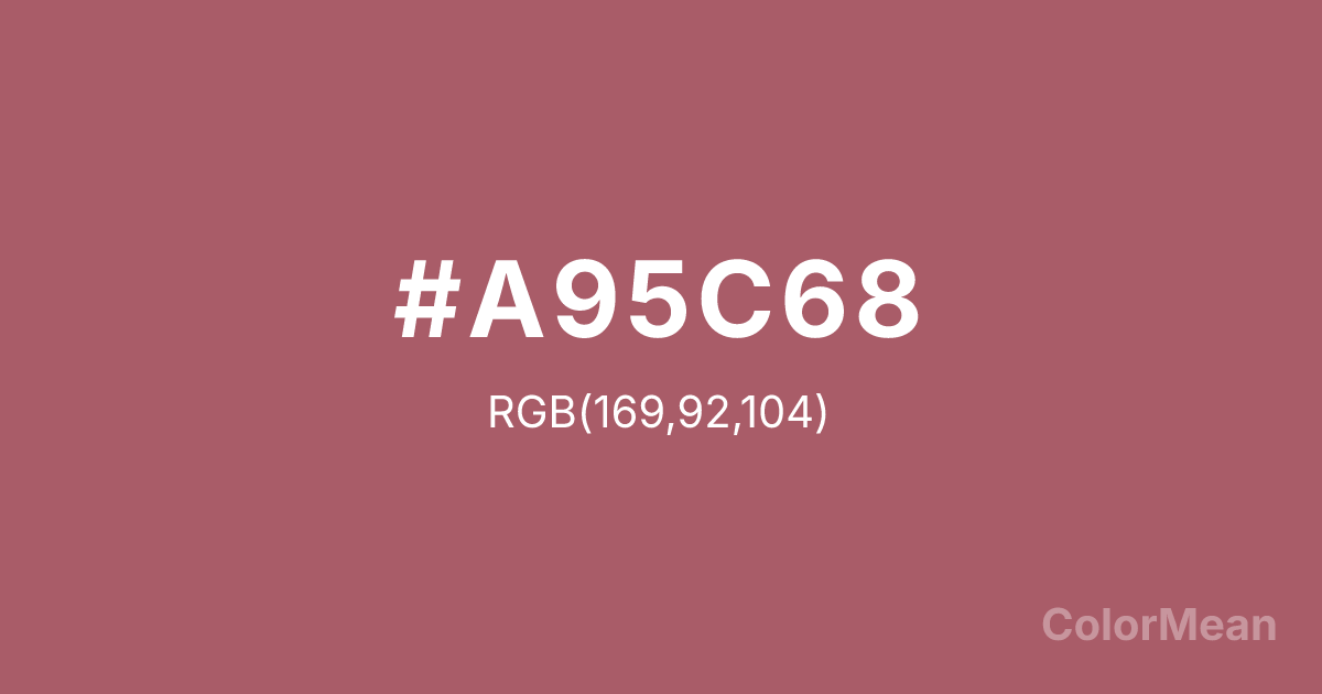 Deep Puce (#A95C68) RGB value is (169, 92, 104). The hex color red value is 169, green is 92, and blue is 104. Its HSL format shows a hue of 351°, saturation of 31 percent, and lightness of 51 percent. The CMYK process values are 0 percent, 46 percent, 38 percent, 34 percent.