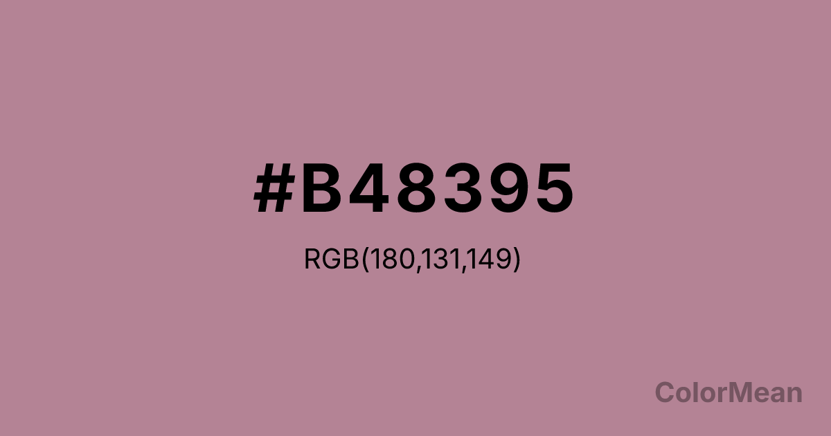 English Lavender (#B48395) RGB value is (180, 131, 149). The hex color red value is 180, green is 131, and blue is 149. Its HSL format shows a hue of 338°, saturation of 25 percent, and lightness of 61 percent. The CMYK process values are 0 percent, 27 percent, 17 percent, 29 percent.
