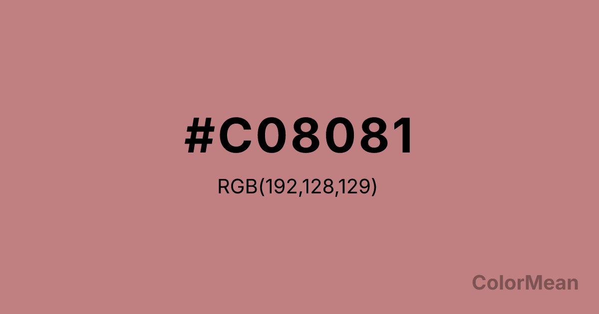 Old Rose (#C08081) RGB value is (192, 128, 129). The hex color red value is 192, green is 128, and blue is 129. Its HSL format shows a hue of 359°, saturation of 34 percent, and lightness of 63 percent. The CMYK process values are 0 percent, 33 percent, 33 percent, 25 percent.