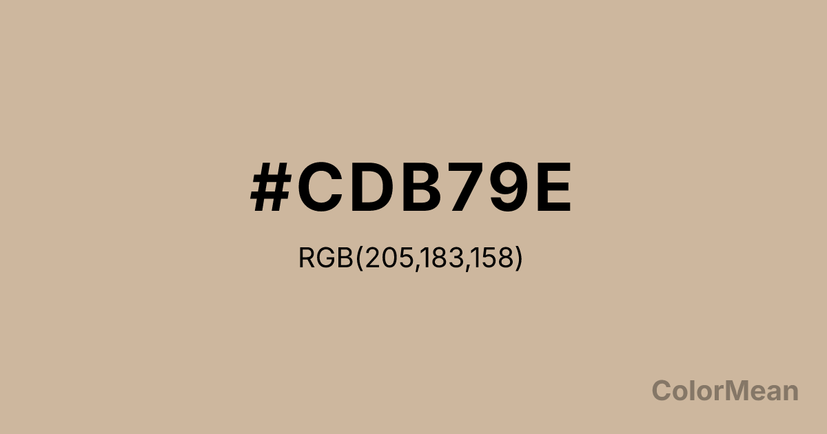 Bisque3 (#CDB79E) RGB value is (205, 183, 158). The hex color red value is 205, green is 183, and blue is 158. Its HSL format shows a hue of 32°, saturation of 32 percent, and lightness of 71 percent. The CMYK process values are 0 percent, 11 percent, 23 percent, 20 percent.