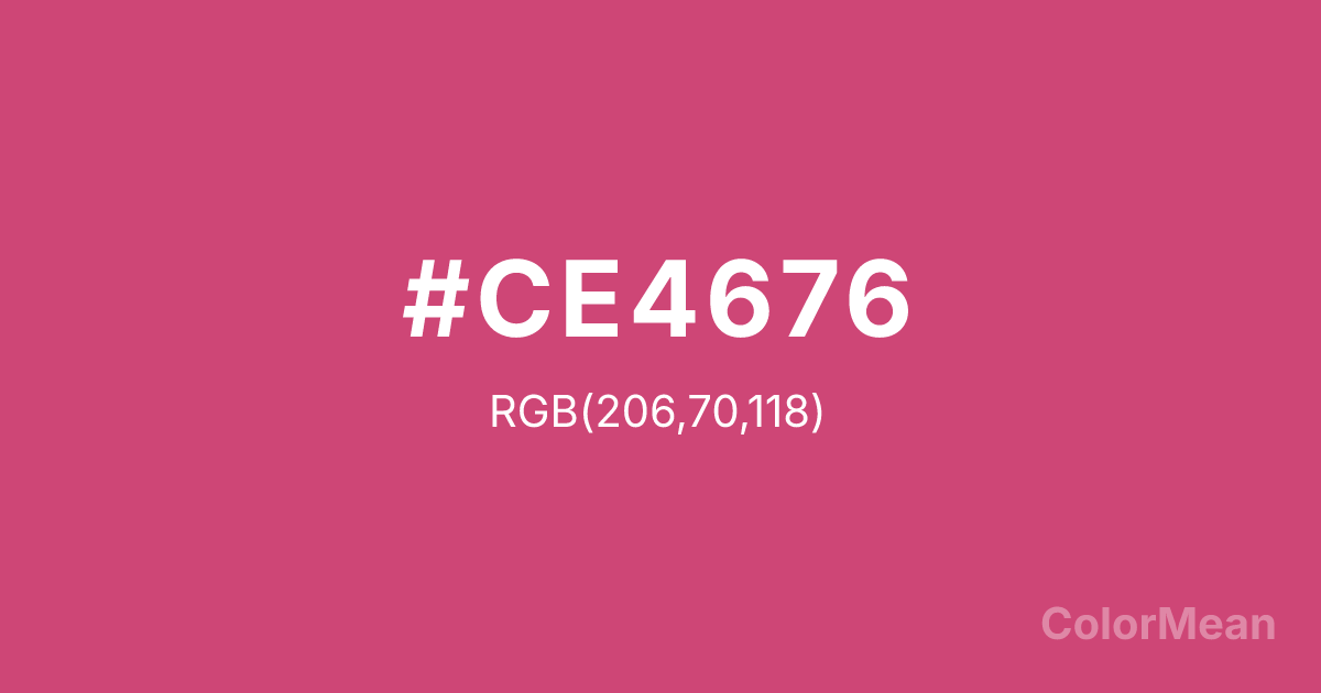 Ruber (#CE4676) RGB value is (206, 70, 118). The hex color red value is 206, green is 70, and blue is 118. Its HSL format shows a hue of 339°, saturation of 58 percent, and lightness of 54 percent. The CMYK process values are 0 percent, 66 percent, 43 percent, 19 percent.