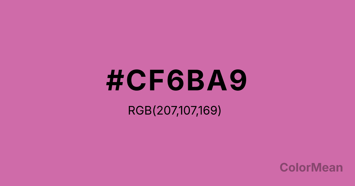 Super Pink (#CF6BA9) RGB value is (207, 107, 169). The hex color red value is 207, green is 107, and blue is 169. Its HSL format shows a hue of 323°, saturation of 51 percent, and lightness of 62 percent. The CMYK process values are 0 percent, 48 percent, 18 percent, 19 percent.