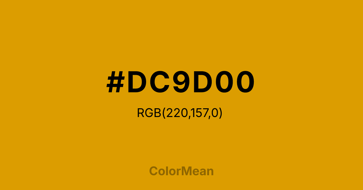 Daffodil Yellow (#DC9D00) RGB value is (220, 157, 0). The hex color red value is 220, green is 157, and blue is 0. Its HSL format shows a hue of 43°, saturation of 100 percent, and lightness of 43 percent. The CMYK process values are 0 percent, 29 percent, 100 percent, 14 percent.