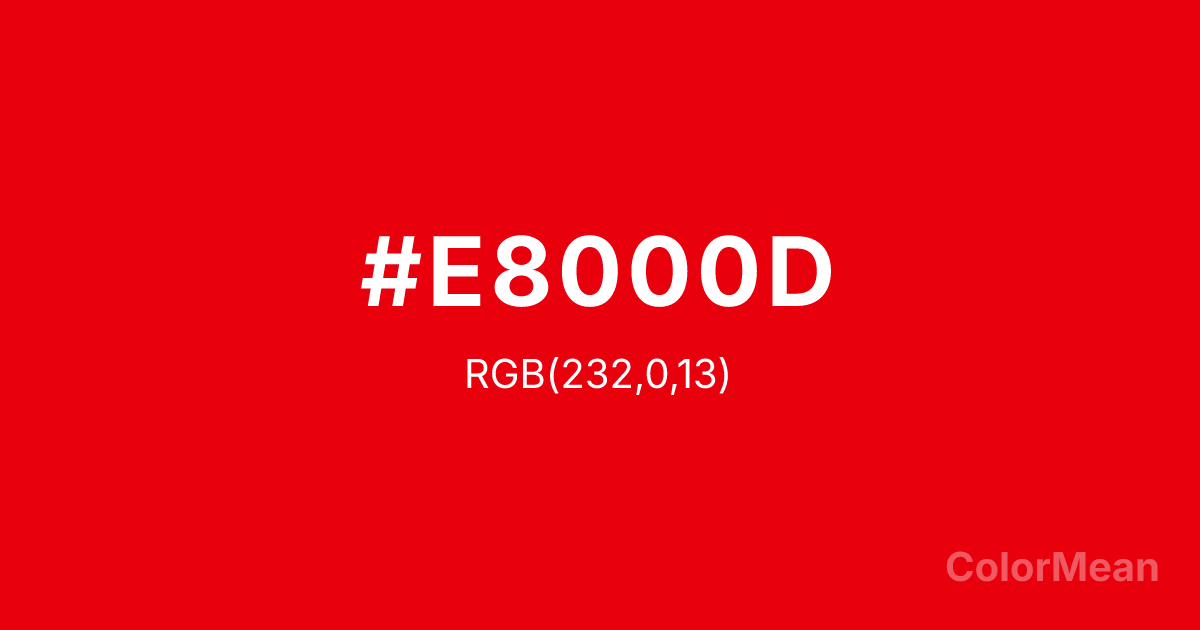 KU Crimson (#E8000D) RGB value is (232, 0, 13). The hex color red value is 232, green is 0, and blue is 13. Its HSL format shows a hue of 357°, saturation of 100 percent, and lightness of 45 percent. The CMYK process values are 0 percent, 100 percent, 94 percent, 9 percent.