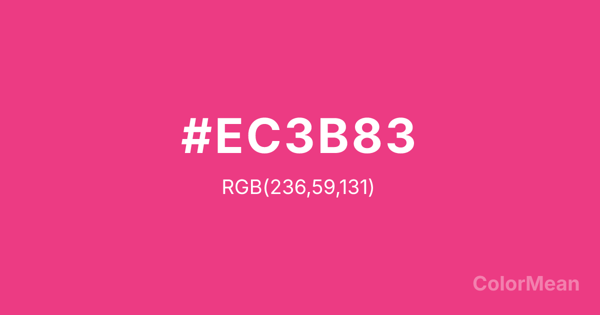 Cerise Pink (#EC3B83) RGB value is (236, 59, 131). The hex color red value is 236, green is 59, and blue is 131. Its HSL format shows a hue of 336°, saturation of 82 percent, and lightness of 58 percent. The CMYK process values are 0 percent, 75 percent, 44 percent, 7 percent.