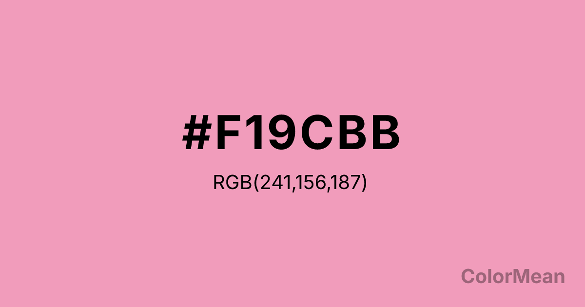 Amaranth Pink (#F19CBB) RGB value is (241, 156, 187). The hex color red value is 241, green is 156, and blue is 187. Its HSL format shows a hue of 338°, saturation of 75 percent, and lightness of 78 percent. The CMYK process values are 0 percent, 35 percent, 22 percent, 5 percent.